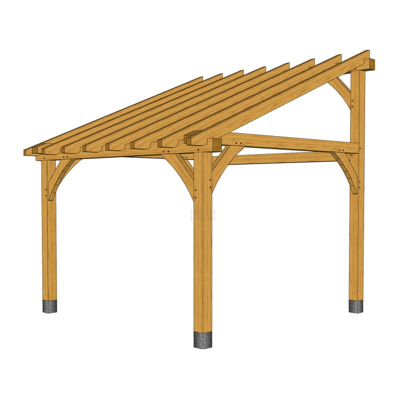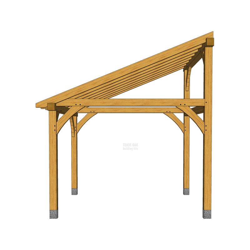 The lean to is a simple design of oak framed structure that stands against (or leans to) an existing building and provides an extra space that can be covered or left open and even have plants added. Trade Oak’s designs involve the use of green oak timber that is durable and high quality while the jointing is done in traditional styles.