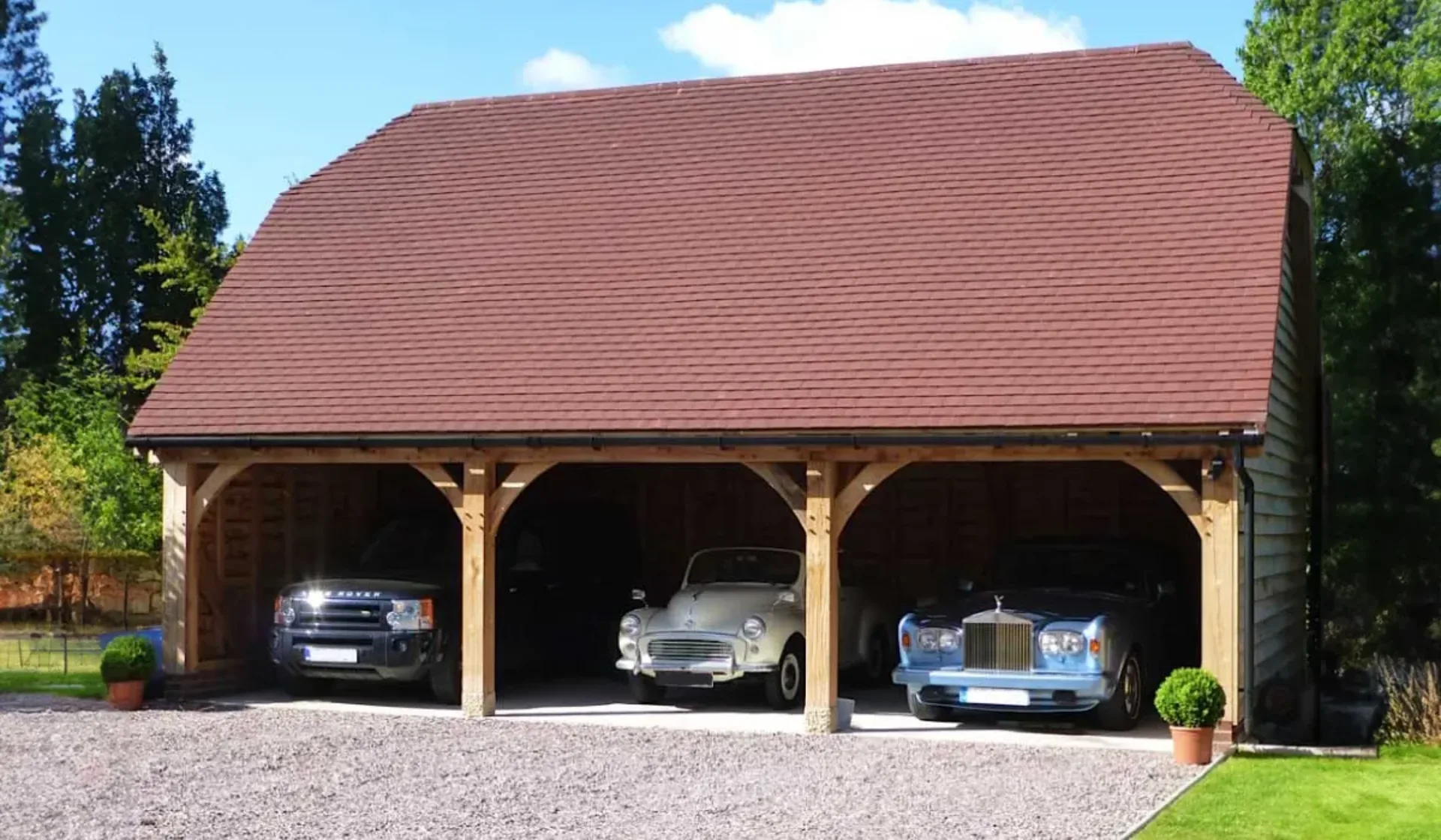 A bespoke oak-frame garage can significantly increase the value of your property. The unique design, high-quality materials, and superior craftsmanship make your home more attractive to potential buyers, offering a substantial return on investment.